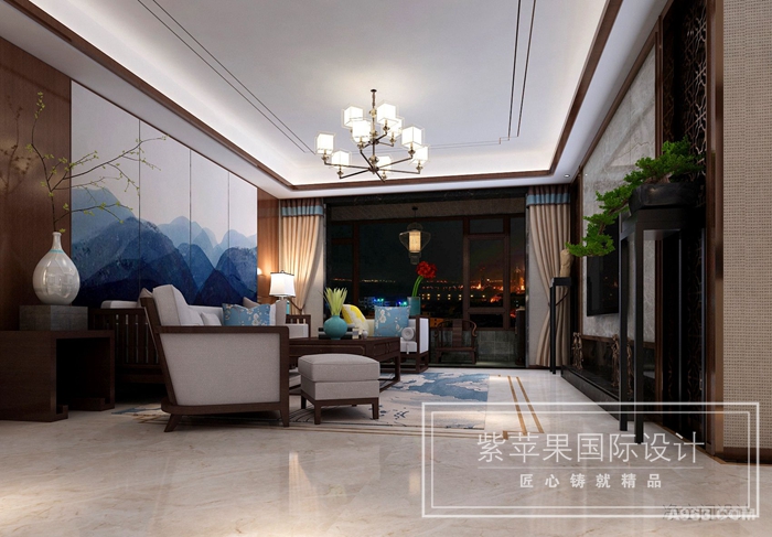 無錫紫蘋果裝飾新中式裝修效果圖案例賞析: