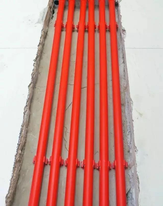 潮濕區(qū)域強(qiáng)電不得走地面,特殊情況在地面布線,線管直接須加PVC專用膠水,并包裹防水電工膠布3-5圈(紅管包藍(lán)色膠布,藍(lán)管包紅色膠布),過道處地面管線用水泥砂漿“八“字護(hù)坡保護(hù)。