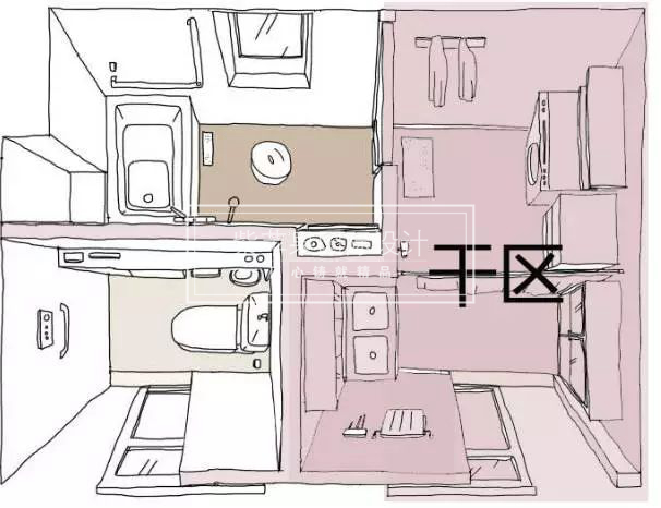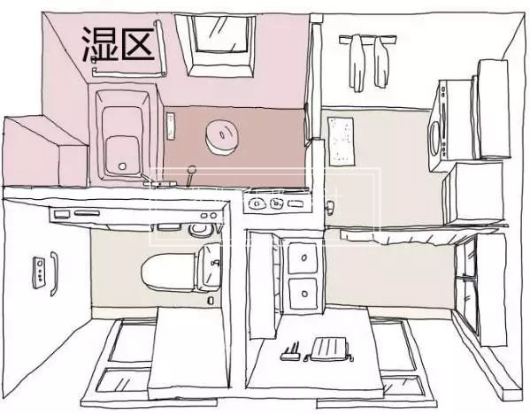 上面所說(shuō)的干濕分離的三種方式,在實(shí)際運(yùn)用上還是無(wú)法完全解決一家人的供需。下圖▼這種將分離做到極致的設(shè)計(jì)是日本最新的設(shè)計(jì)理念,非常的具有人性化和實(shí)用性。