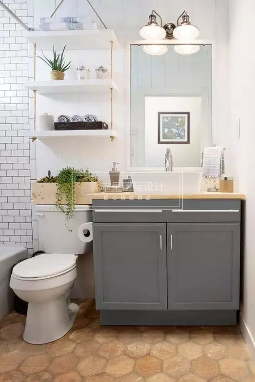 擱板比壁龕好一點(diǎn)的是,不用破壞墻體,同時(shí)又可以充分利用衛(wèi)生間的空間,只是在承重上會(huì)有一些限制。在浴室的小角落或者馬桶上方都可以進(jìn)行設(shè)計(jì)。