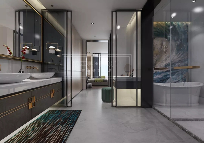 除了是睡覺(jué)的地方,設(shè)計(jì)師建議最好另外增加更衣室區(qū)域,回歸各自功能需求,記得考慮通風(fēng)與采光。主臥與陽(yáng)臺(tái)之間的玻璃隔斷設(shè)計(jì),阻隔視線不完全的破壞隱私性,還能增加光線接觸區(qū)域。