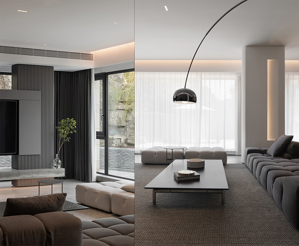 客戶喜歡簡約大氣的裝修風(fēng)格,想要顯示出空間感,然而我們毫不猶豫的選擇了現(xiàn)代簡約,質(zhì)感和高