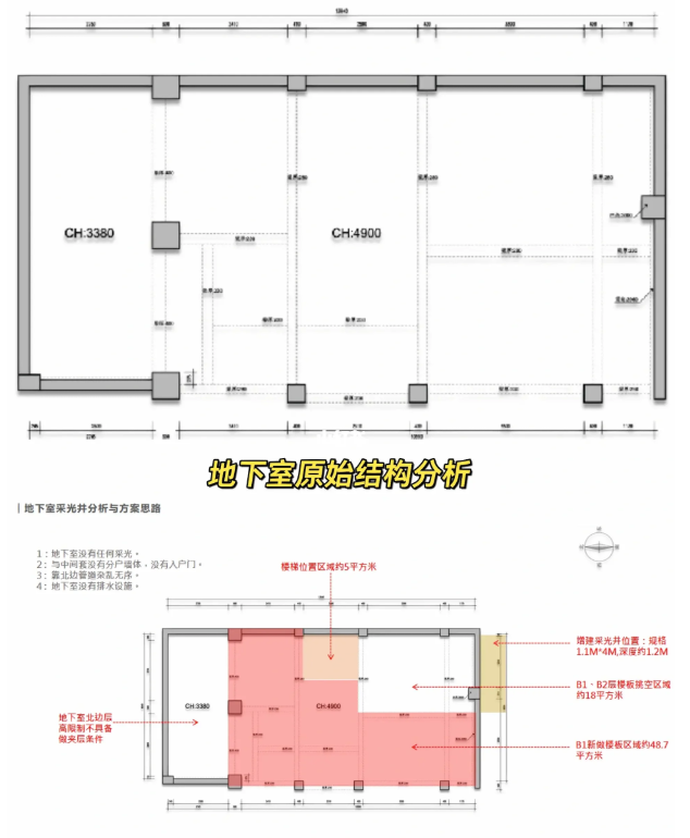 地下室: 修改了樓梯的位置,利用樓梯旁邊的位置做了一個客衛(wèi),其他區(qū)域分為了會客區(qū)休閑影視。
