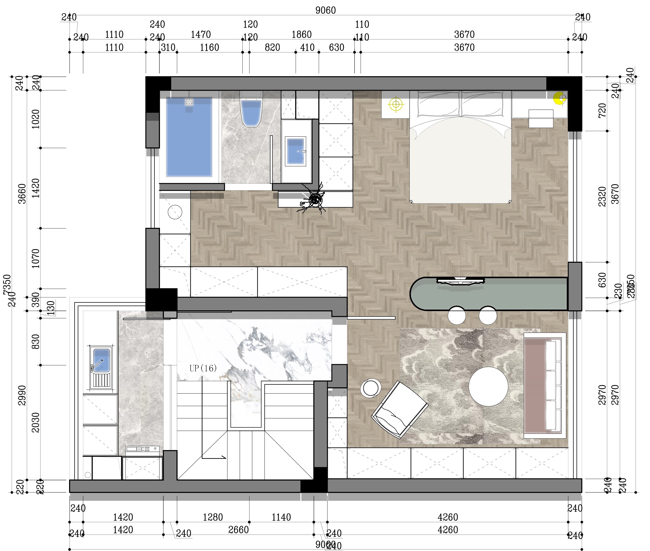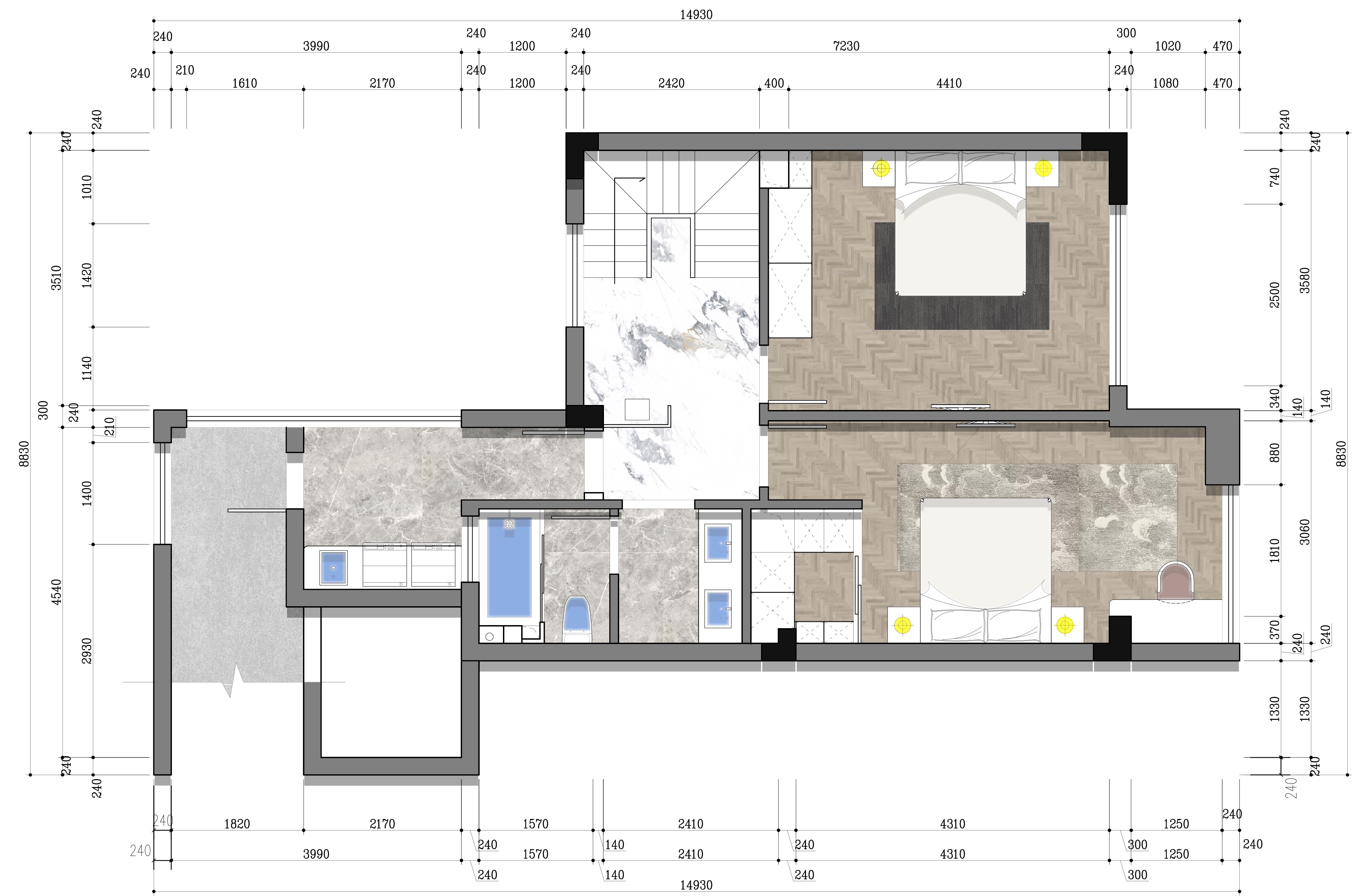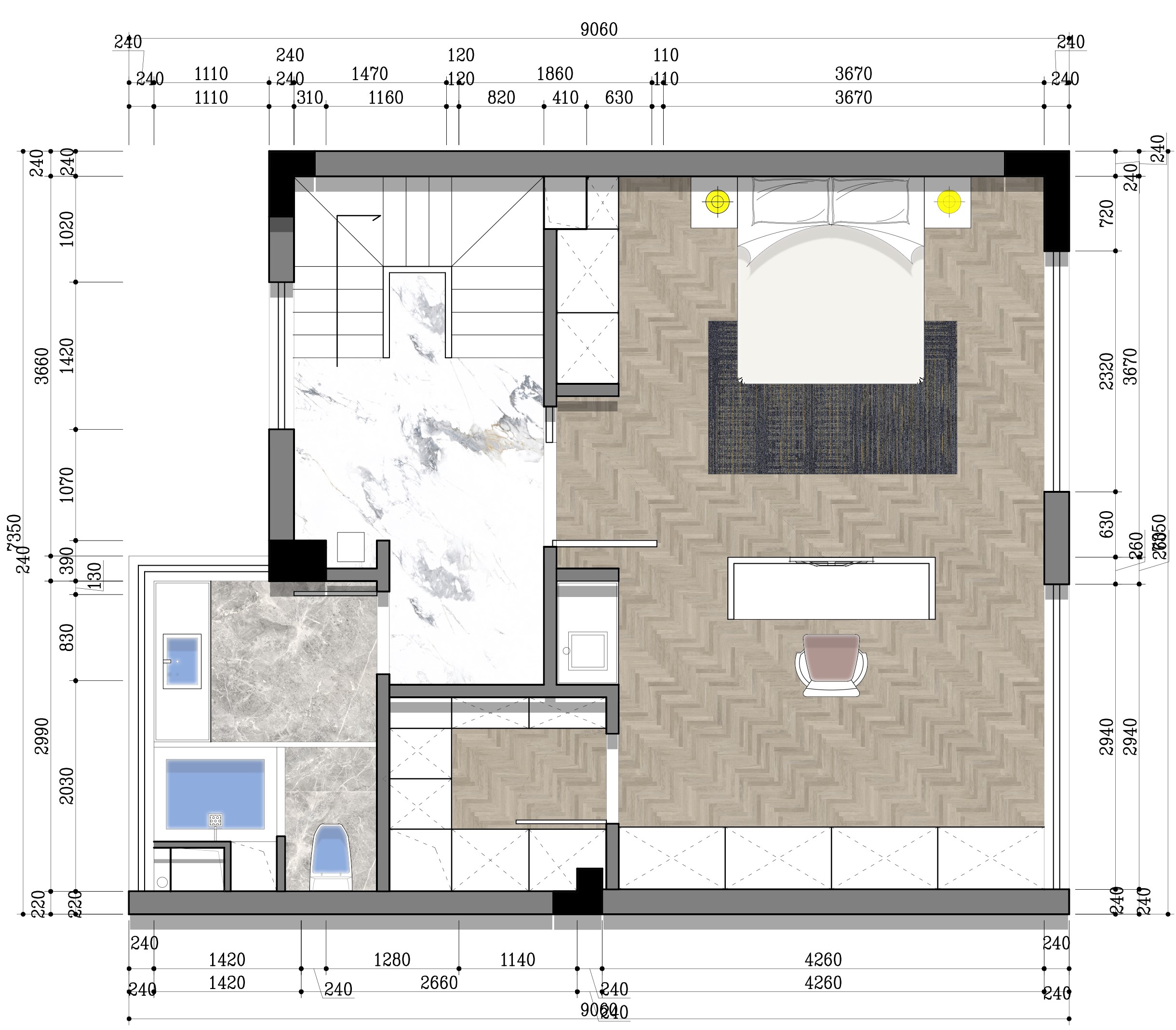 現(xiàn)澆之后做了一個大主臥,外面做了個書房,方便辦公使用!