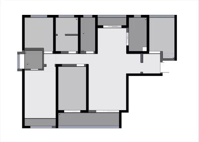 戶型整體而言空間較為規(guī)整,南北通透保證了采光和通風(fēng)。但是房屋承重墻較多,限定了每個(gè)空間的大小,不便于房屋的格局改變;且房屋拐角較多,面積難以利用。