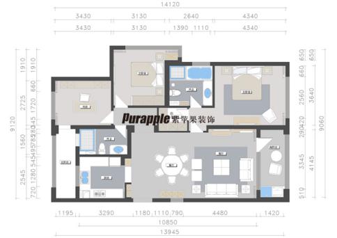 我們的需求:注重比較細致的功能區(qū)域(獨立多功能室、衣帽間、休閑區(qū)等),且在滿足功能的前提下,希望在保留整個空間區(qū)域的情況下做適當?shù)男薷?,使得整體布局更趨合理化;