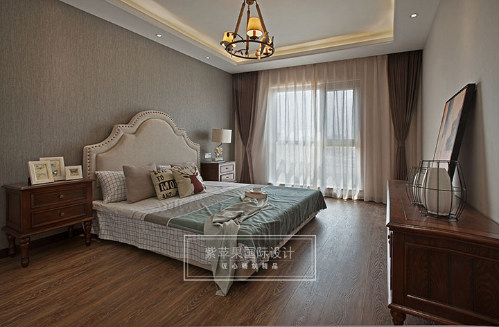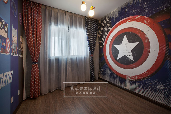 客廳餐廳及樓上主人的獨立生活空間整體風格都是充滿個性的工業(yè)風,而長輩房和兒童房卻貼心考慮到住者的年齡和心理需求。長輩房整體變化為溫馨素雅的淺色,家具、床品乃至燈飾皆有變化,觸感更加細致貼心。而兒童房超級隊長的主題風格充滿童趣和天真,十分贏得家中寶貝喜歡。