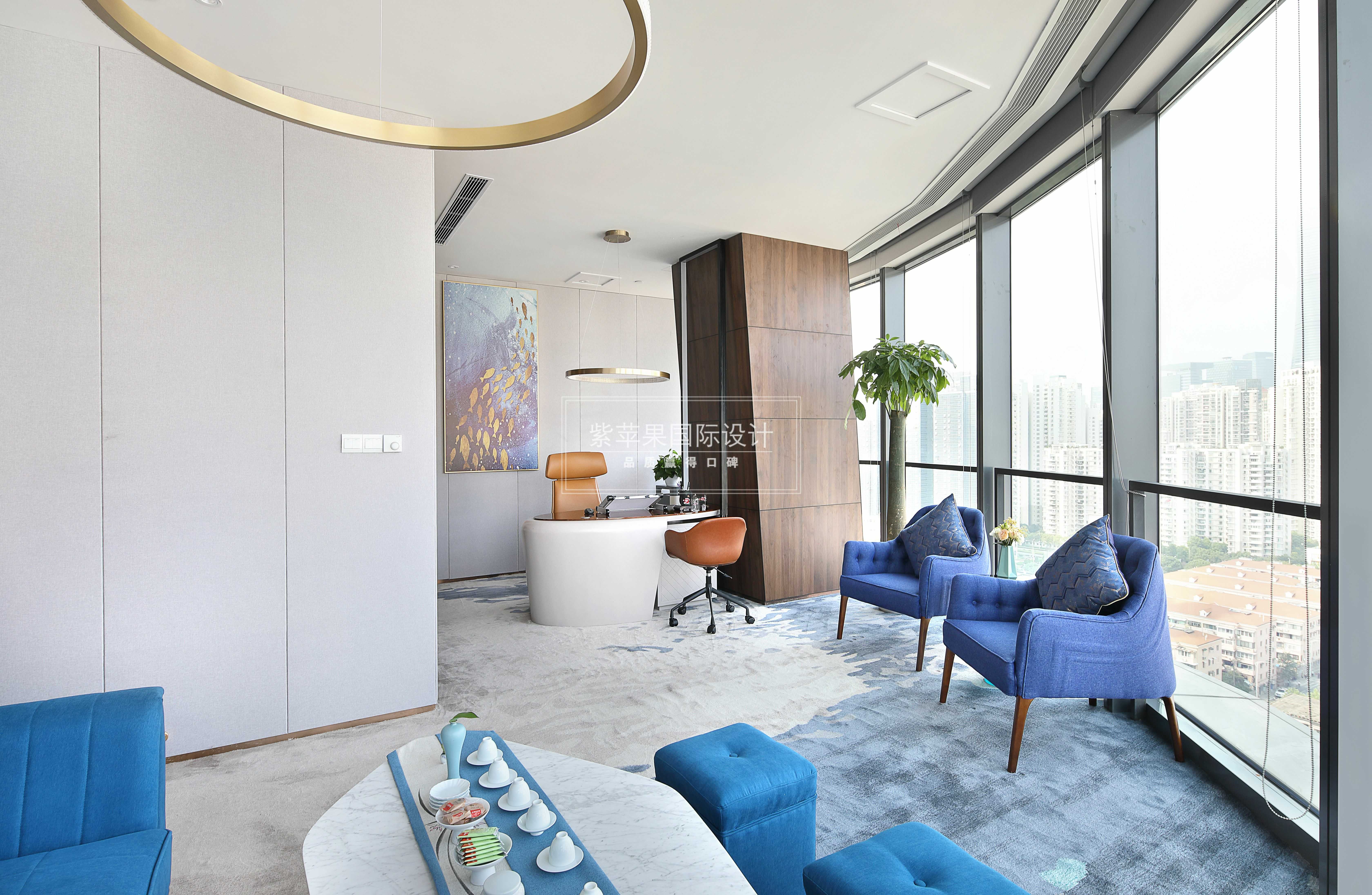 董事長辦公室呈半環(huán)形,空間理念延續(xù)整體場所的設(shè)計,金屬材質(zhì)注入了現(xiàn)代元素,木質(zhì)為空間帶來了沉穩(wěn)內(nèi)斂的感受。