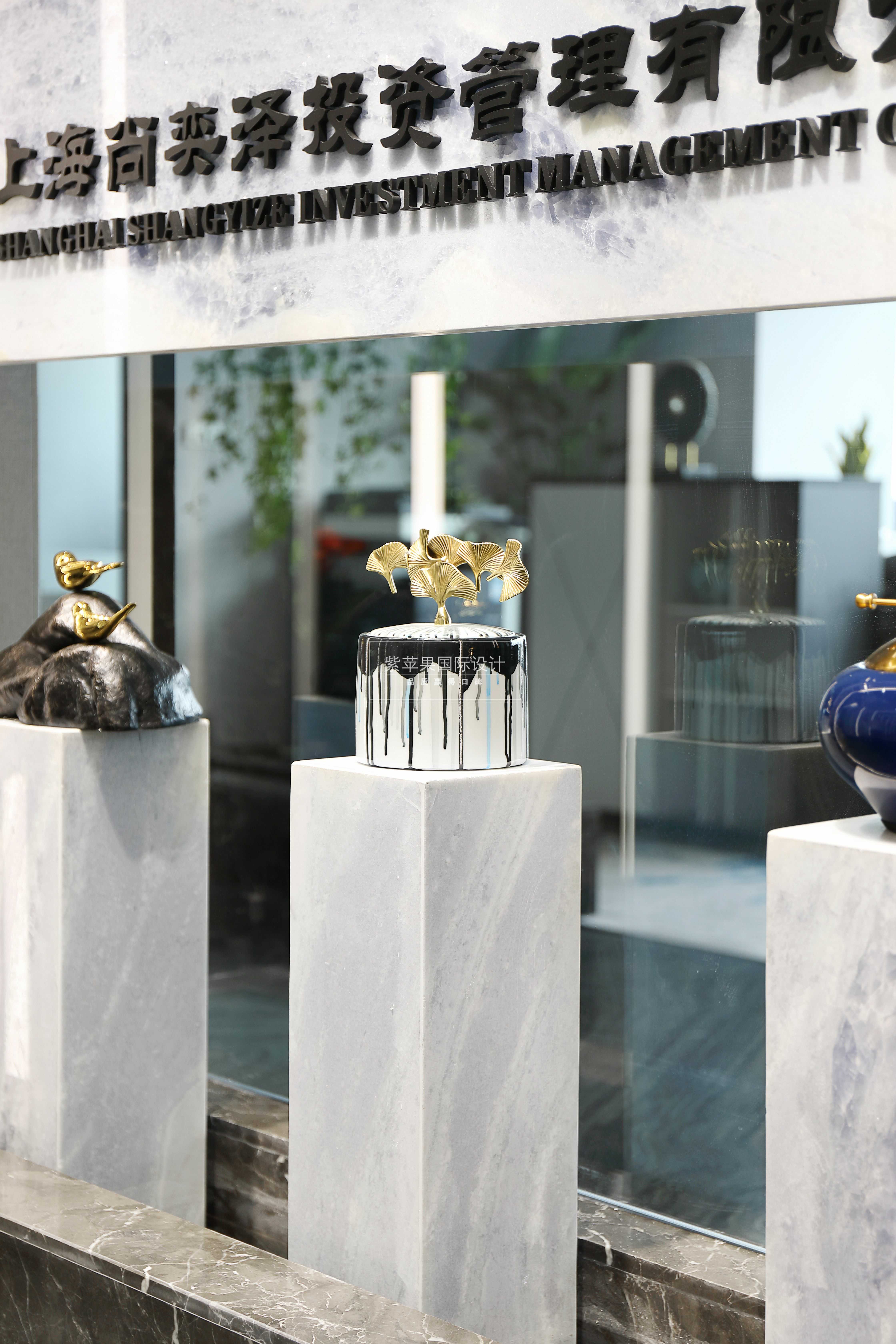 靠墻位置用一面半開放式的展示柜作墻面造型,收藏了很多形狀、顏色及材質(zhì)各異的藝術(shù)品,每個藝術(shù)品都有其內(nèi)在的深層含義,既彰顯了公司主人的獨特品位,又增添了空間的質(zhì)感和藝術(shù)觀賞性。
