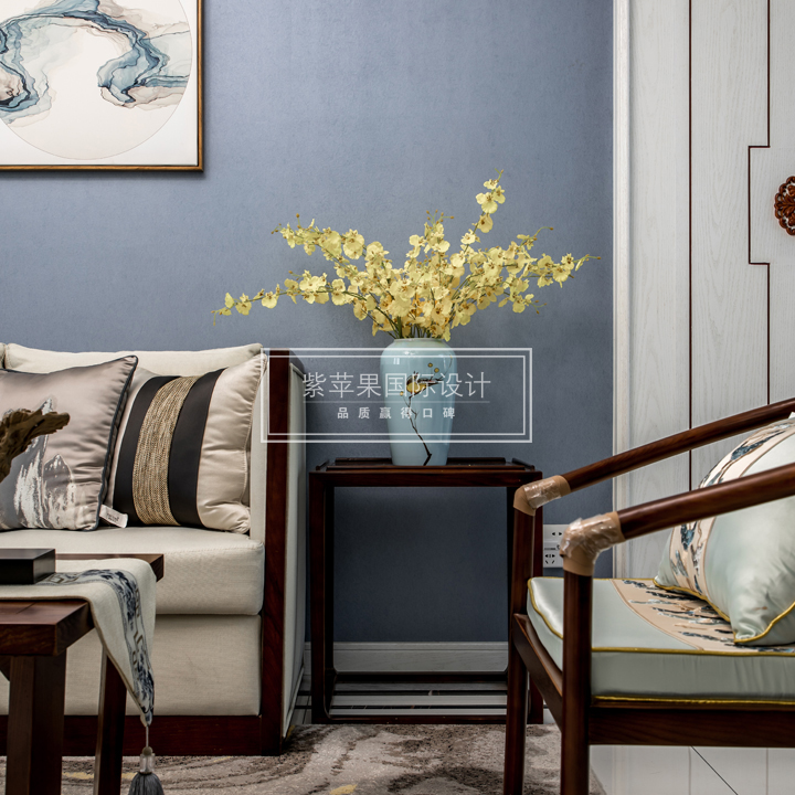 軟裝上運(yùn)用傳統(tǒng)文化的元素來體現(xiàn),同時(shí)又兼顧現(xiàn)代人對(duì)生活的理解和追求,擺脫傳統(tǒng)中式那種過于追求莊重典雅而缺乏時(shí)尚、溫馨的古板印象。